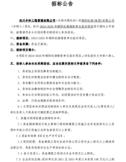 2024-2025年綿陽機(jī)場維修單位招采項(xiàng)目招標(biāo)公告